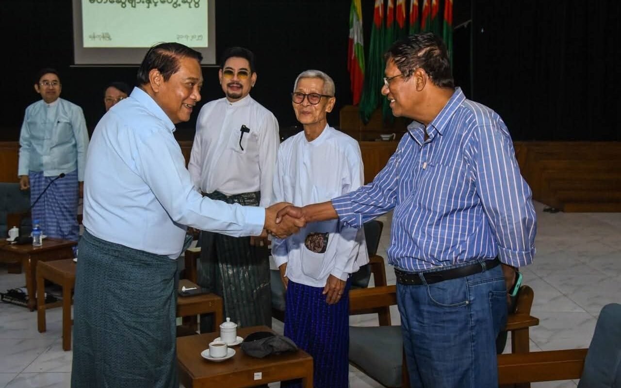USDP Chairman, U Khin Yi, met with actors at a “Meeting with Friends” event and discussed the upcoming elections in the next six months.