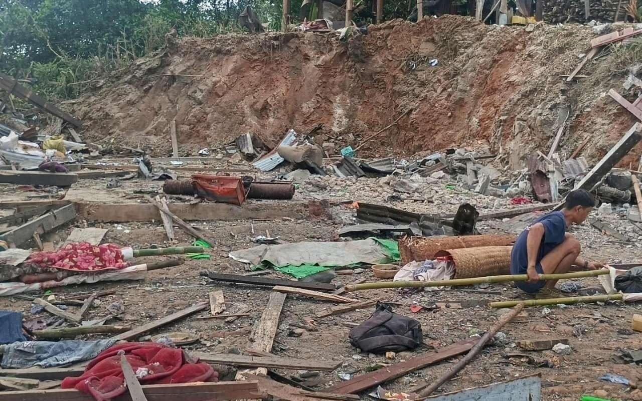 Home » The military junta pretended to drop bombs on Mogok and it dropped two more 250-pound bombs on the village of Manhuong in Mong Lon Township, more than 20 miles away from Mogok