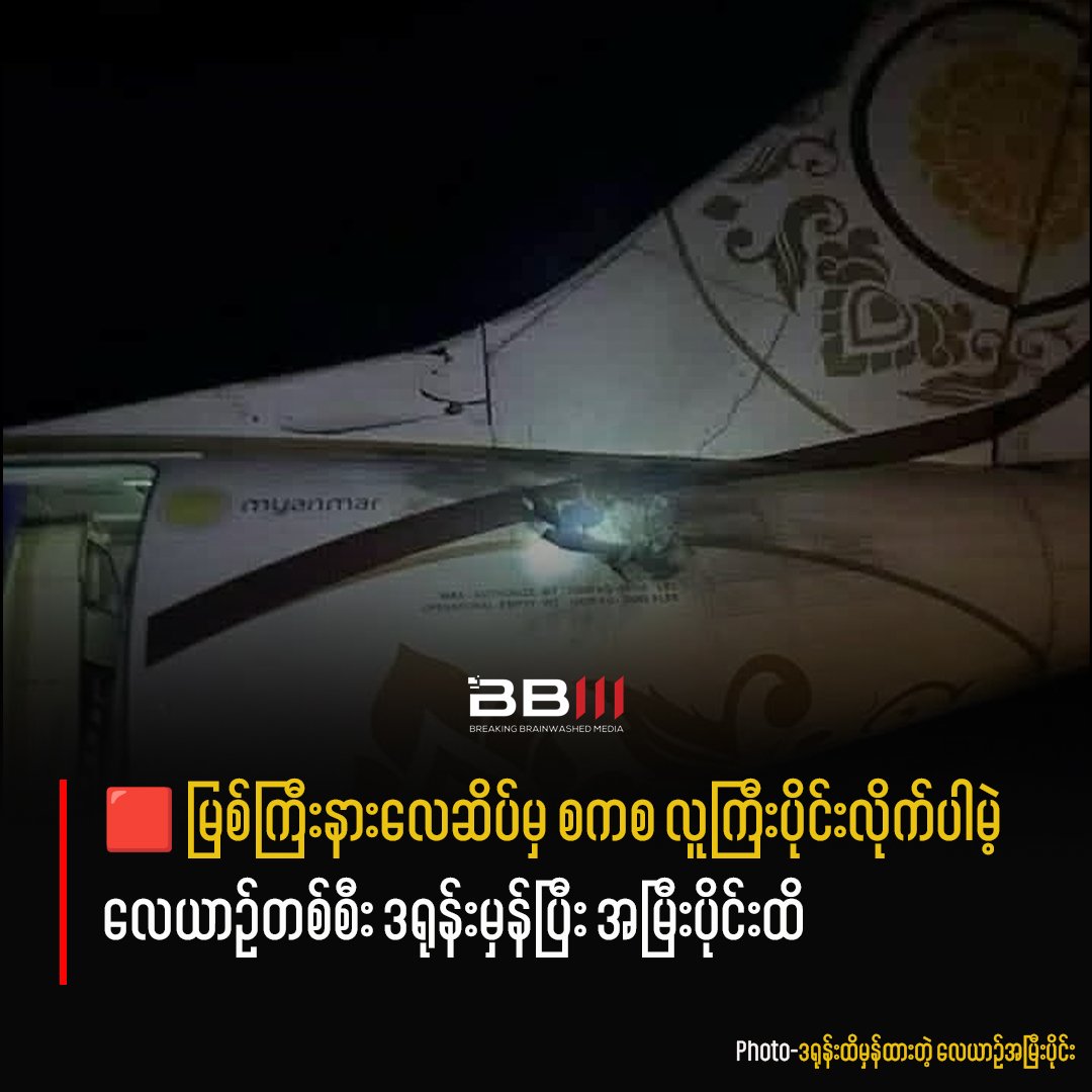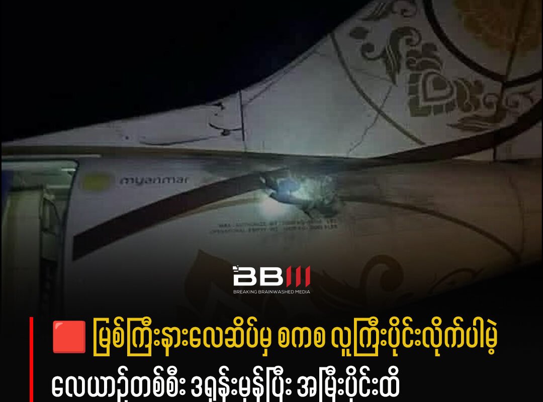 A plane carrying senior military officer from Myitkyina Airport in Kachin State was hit by a drone and hitting its tail end.