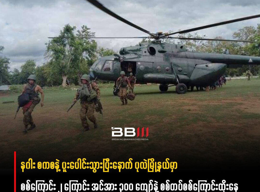 The military junta sent 200 soldiers to Kokko Kone Village, Pale Township, 10 times by MI-17 helicopter from the Northwestern military command – based in Monywa, a member of Yinmabin District People’s Defense Force told BBM.